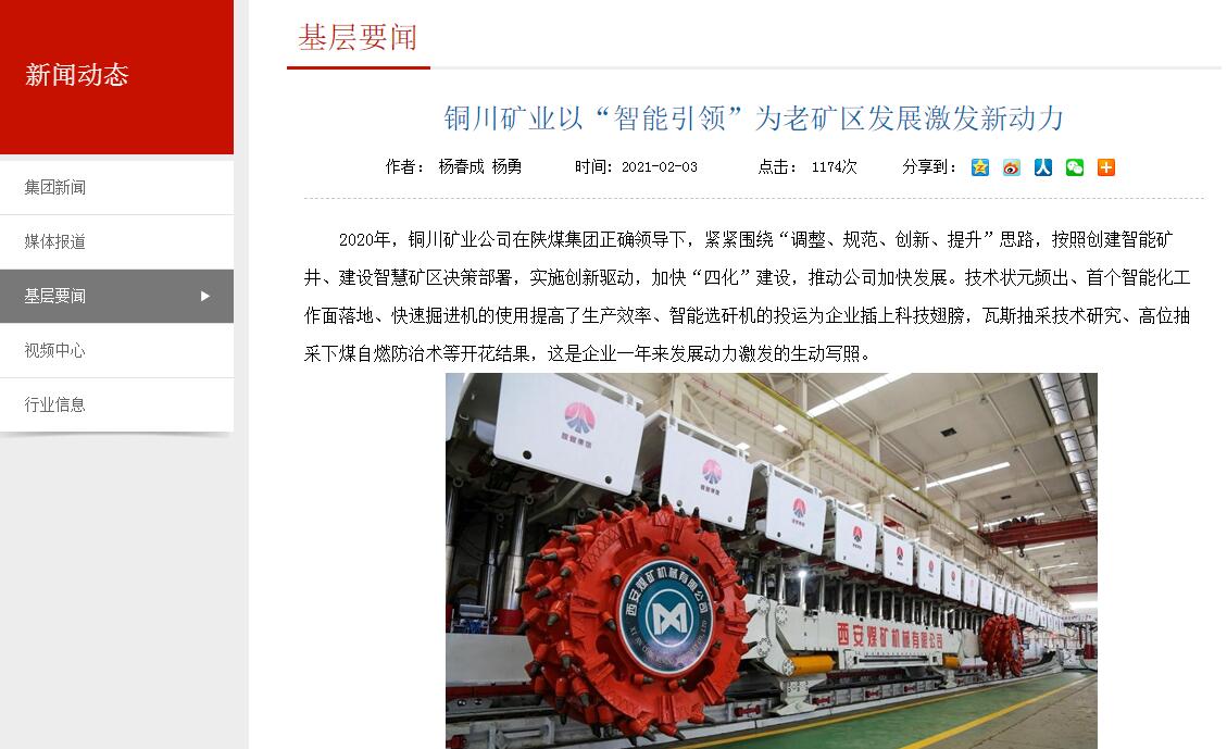 2020年,銅川礦業(yè)公司在陜煤集團正確領(lǐng)導(dǎo)下,緊緊圍繞“調(diào)整、規(guī)范、創(chuàng)新、提升”思路,按照創(chuàng)建智能礦井、建設(shè)智慧礦區(qū)決策部署,實施創(chuàng)新驅(qū)動,加快“四化”建設(shè),推動公司加快發(fā)展。技術(shù)狀元頻出、首個智能化工作面落地、快速掘進機的使用提高了生產(chǎn)效率、智能選矸機的投運為企業(yè)插上科技翅膀,瓦斯抽采技術(shù)研究、高位抽采下煤自燃防治術(shù)等開花結(jié)果,這是企業(yè)一年來發(fā)展動力激發(fā)的生動寫照。