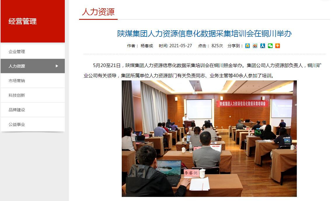 5月20至21日,陜煤集團人力資源信息化數(shù)據(jù)采集培訓會在銅川照金舉辦。集團公司人力資源部負責人,銅川礦業(yè)公司有關(guān)領(lǐng)導(dǎo),集團所屬單位人力資源部門有關(guān)負責同志、業(yè)務(wù)主管等40余人參加了培訓。