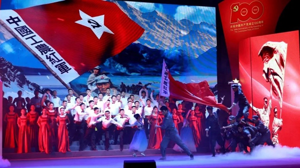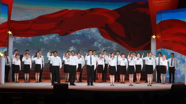100分鐘的演出精彩紛呈,高潮迭起,為現(xiàn)場干部職工獻(xiàn)上了一場豐盛的視覺盛宴。演出在全體人員齊唱《沒有共產(chǎn)黨就沒有新中國》的歌聲中完美落幕,慷慨激昂、雄壯有力的歌聲使現(xiàn)場氣氛達(dá)到頂點(diǎn)。