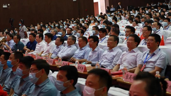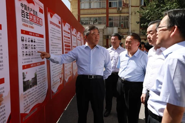 銅川礦業(yè)公司黨委書記、執(zhí)行董事劉水利演出開始前致辭。歌會開始前,與會領(lǐng)導(dǎo)參觀了陜煤集團(tuán)慶祝建黨100周年主題展覽。(??讫?巨宏偉)