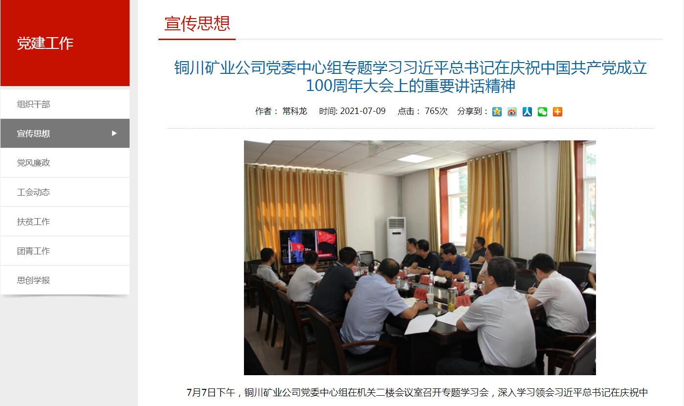 7月7日下午,銅川礦業(yè)公司黨委中心組在機關(guān)二樓會議室召開專題學(xué)習(xí)會,深入學(xué)習(xí)領(lǐng)會習(xí)近平總書記在慶祝中國共產(chǎn)黨成立100周年大會上的重要講話精神。會議由公司黨委書記、執(zhí)行董事劉水利主持。公司黨委中心組成員參加會議,公司有關(guān)部門負(fù)責(zé)人列席會議。