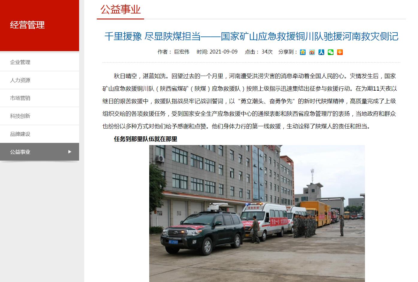 秋日晴空,湛藍(lán)如洗?;赝^去的一個(gè)月里,河南遭受洪澇災(zāi)害的消息牽動(dòng)著全國人民的心。災(zāi)情發(fā)生后,國家礦山應(yīng)急救援銅川隊(duì)(陜西省煤礦(陜煤)應(yīng)急救援隊(duì))按照上級指示迅速集結(jié)出征參與救援行動(dòng)。在為期11天夜以繼日的艱苦救援中,救援隊(duì)指戰(zhàn)員牢記戰(zhàn)訓(xùn)誓詞,以“勇立潮頭、奮勇爭先”的新時(shí)代陜煤精神,高質(zhì)量完成了上級組織交給的各項(xiàng)救援任務(wù),受到國家安全生產(chǎn)應(yīng)急救援中心的通報(bào)表彰和陜西省應(yīng)急管理廳的表揚(yáng),當(dāng)?shù)卣腿罕娨布娂娨远喾N方式對他們給予感謝和點(diǎn)贊。他們身體力行的第一線救援,生動(dòng)詮釋了陜煤人的責(zé)任和擔(dān)當(dāng)。