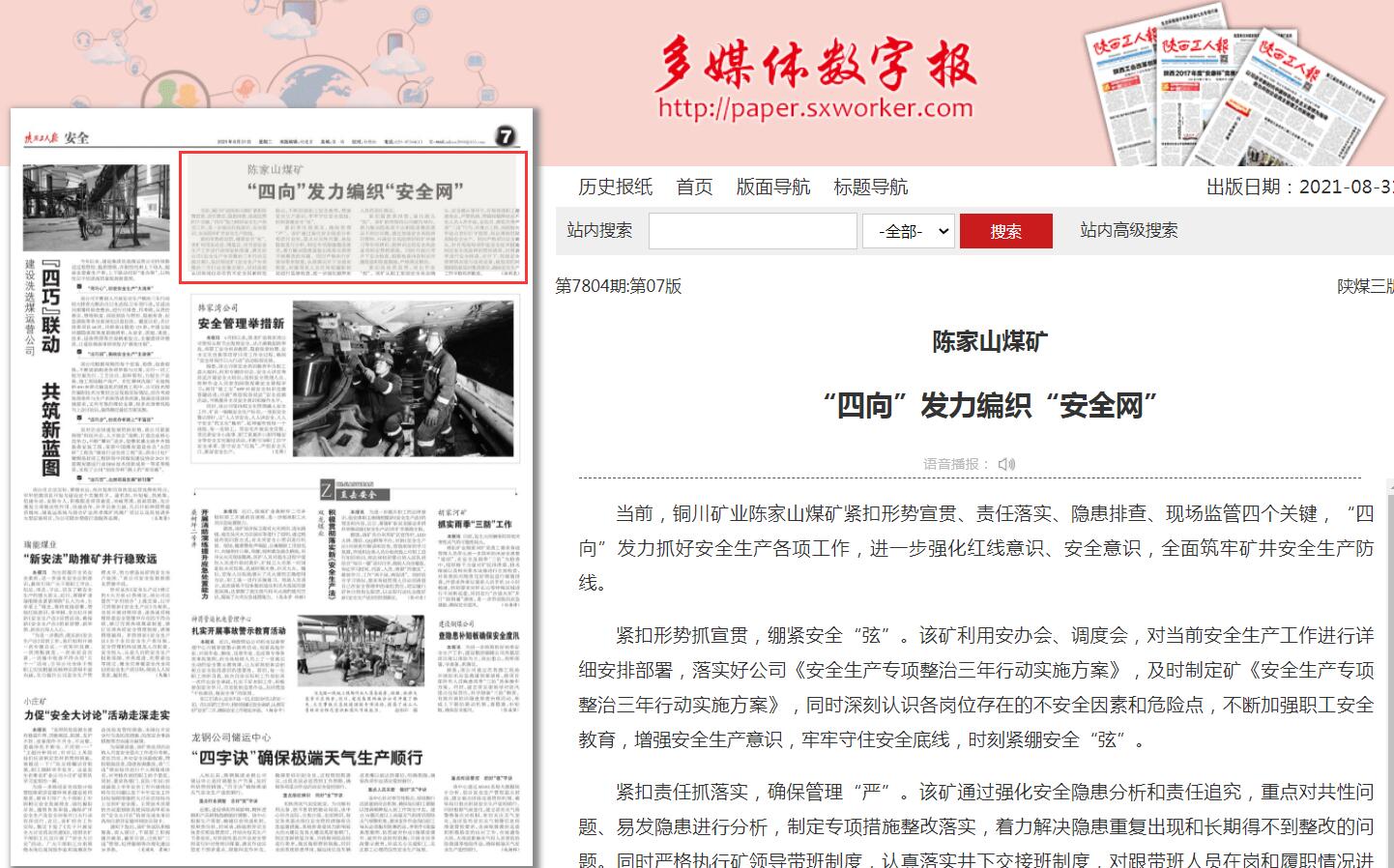 當(dāng)前,銅川礦業(yè)陳家山煤礦緊扣形勢宣貫、責(zé)任落實(shí)、隱患排查、現(xiàn)場監(jiān)管四個(gè)關(guān)鍵,“四向”發(fā)力抓好安全生產(chǎn)各項(xiàng)工作,進(jìn)一步強(qiáng)化紅線意識(shí)、安全意識(shí),全面筑牢礦井安全生產(chǎn)防線。