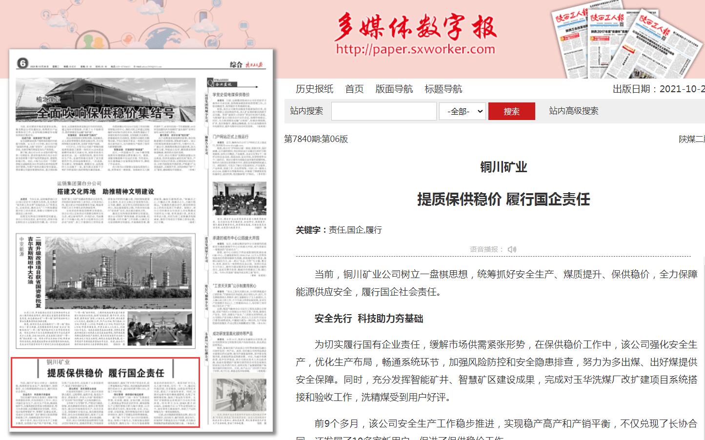 當(dāng)前,銅川礦業(yè)公司樹立一盤棋思想,統(tǒng)籌抓好安全生產(chǎn)、煤質(zhì)提升、保供穩(wěn)價(jià),全力保障能源供應(yīng)安全,履行國企社會責(zé)任。