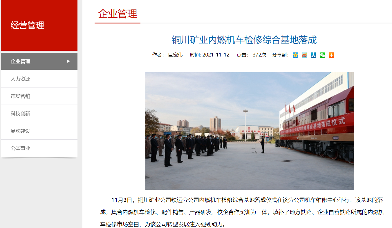 該公司領(lǐng)導(dǎo)表示,銅川礦區(qū)鐵路運營30多年來,在一代又一代銅煤鐵運人的努力下,鐵路運量由運營之初的400多萬噸提高到如今的1000萬噸以上,安全連續(xù)12年實現(xiàn)了“零”目標(biāo)。特別是近年來,鐵運分公司立足新發(fā)展階段、貫徹新發(fā)展理念、融入新發(fā)展格局,按照公司走出去發(fā)展戰(zhàn)略部署,在危機中育新機、于變局中開新局,主動出擊,積極作為,一步一個一個腳印,一步一個臺階,邁出了企業(yè)轉(zhuǎn)型升級、創(chuàng)新發(fā)展新步伐。此次綜合基地的落成,標(biāo)志著公司在優(yōu)化產(chǎn)業(yè)結(jié)構(gòu),延伸產(chǎn)業(yè)鏈,推動企業(yè)創(chuàng)新發(fā)展上又邁上了新臺階,積蓄了新力量,為開辟新的市場和培育新的經(jīng)濟增長點贏得了主動權(quán),為銅川礦業(yè)樹立了銅煤結(jié)構(gòu)調(diào)整、高質(zhì)量發(fā)展的新標(biāo)桿。