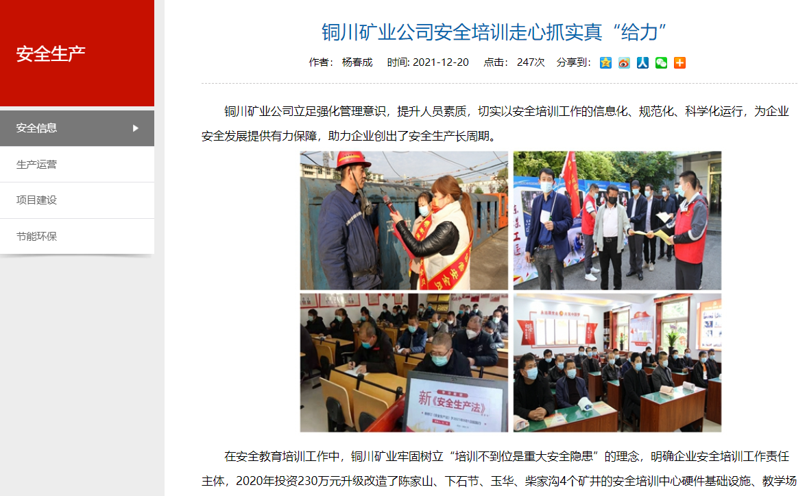 銅川礦業(yè)公司立足強(qiáng)化管理意識(shí),提升人員素質(zhì),切實(shí)以安全培訓(xùn)工作的信息化、規(guī)范化、科學(xué)化運(yùn)行,為企業(yè)安全發(fā)展提供有力保障,助力企業(yè)創(chuàng)出了安全生產(chǎn)長(zhǎng)周期。