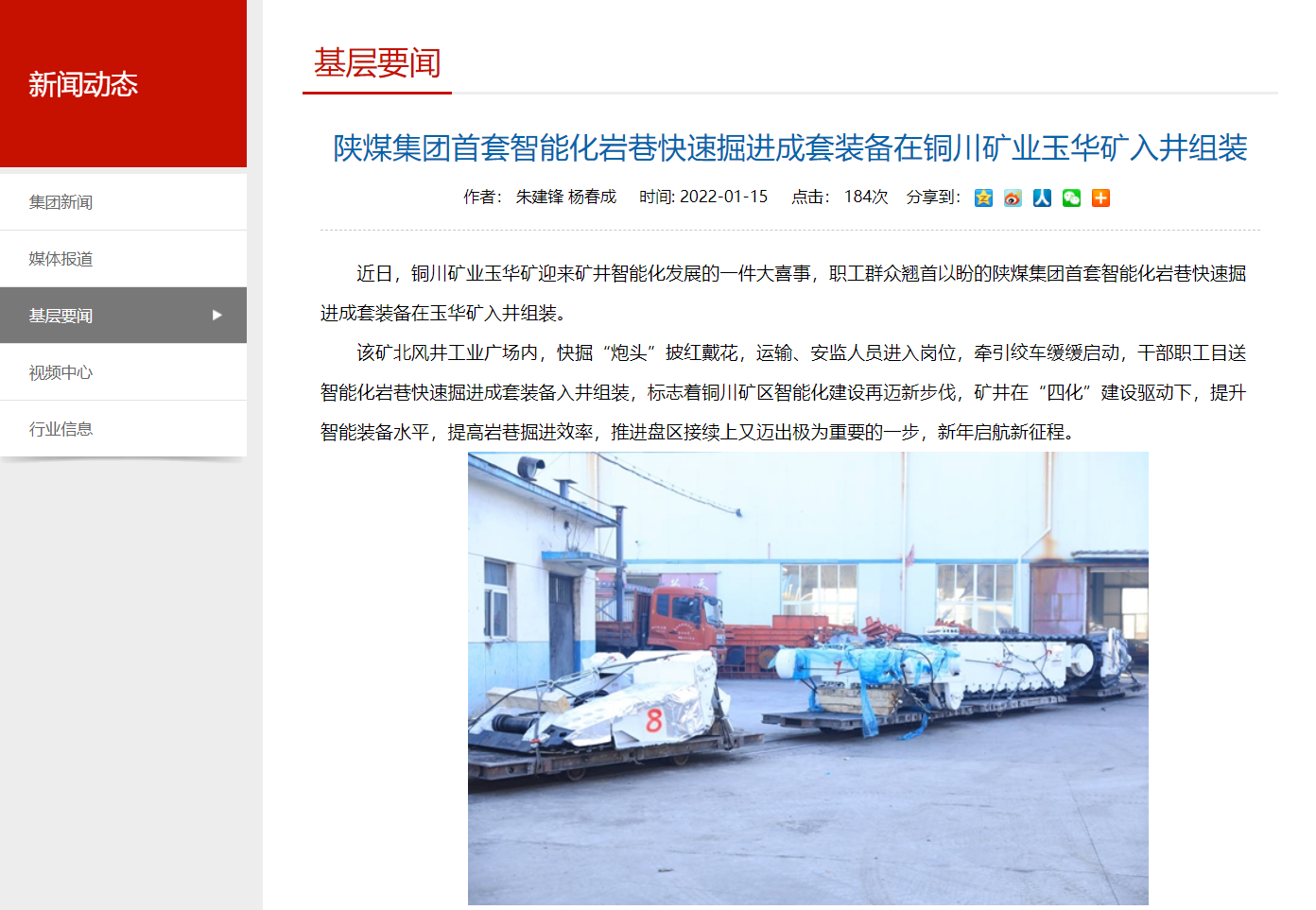 近日,銅川礦業(yè)玉華礦迎來礦井智能化發(fā)展的一件大喜事,職工群眾翹首以盼的陜煤集團首套智能化巖巷快速掘進成套裝備在玉華礦入井組裝。