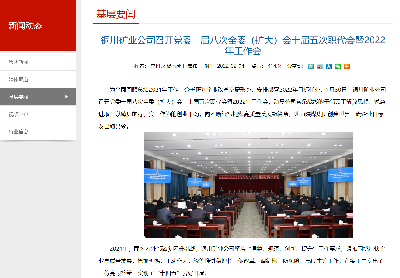 為全面回顧總結(jié)2021年工作,分析研判企業(yè)改革發(fā)展形勢,安排部署2022年目標任務(wù),1月30日,銅川礦業(yè)公司召開黨委一屆八次全委(擴大)會、十屆五次職代會暨2022年工作會,動員公司各條戰(zhàn)線的干部職工解放思想、銳意進取,以踔厲前行、實干作為的創(chuàng)業(yè)干勁,向不斷續(xù)寫銅煤高質(zhì)量發(fā)展新篇章,助力陜煤集團創(chuàng)建世界一流企業(yè)目標發(fā)出動員令。