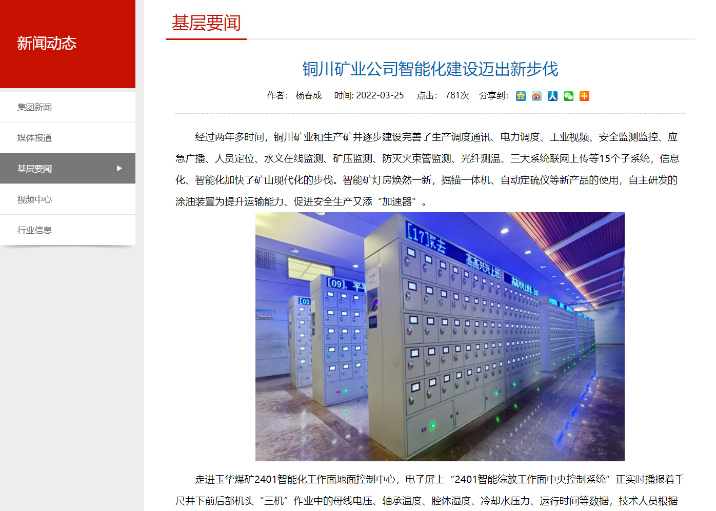 風(fēng)正勁,吹來(lái)科技興企、智慧礦山之春風(fēng)。銅川礦業(yè)建設(shè)有網(wǎng)絡(luò)安全技術(shù)和信息數(shù)據(jù)中心,網(wǎng)絡(luò)采用千兆主干,專線連接集團(tuán)公司,光纖連接生產(chǎn)礦井及其它二級(jí)單位,互通互連圓了科技?jí)?,為各類信息化、自?dòng)化系統(tǒng)提供不間斷后臺(tái)服務(wù),為生產(chǎn)調(diào)度、安全管控、自動(dòng)化控制及安全監(jiān)測(cè)監(jiān)控、經(jīng)營(yíng)決策的信息數(shù)據(jù)安全可靠傳輸提供了安全保證。(楊春成)