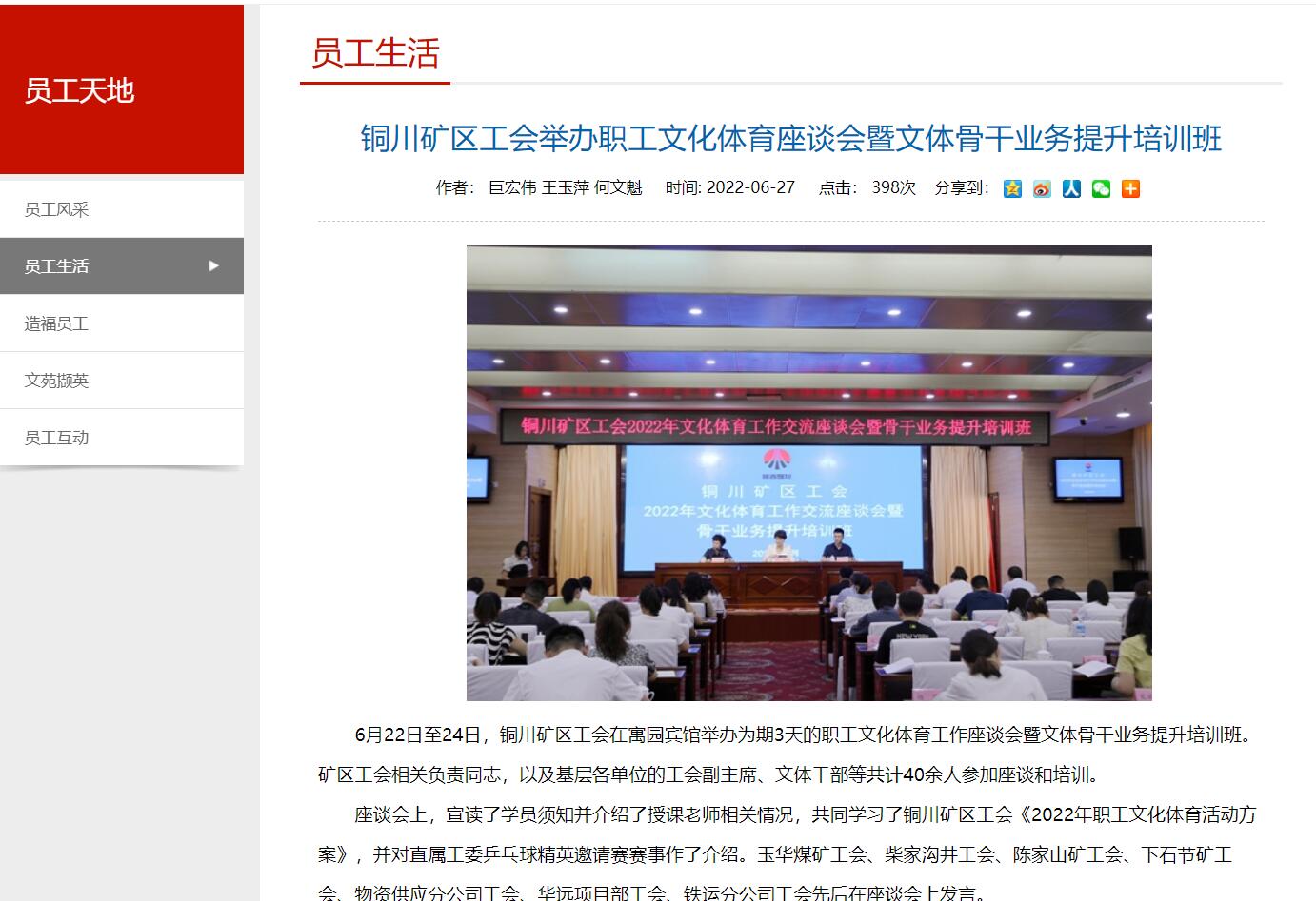 6月22日至24日,銅川礦區(qū)工會(huì)在寓園賓館舉辦為期3天的職工文化體育工作座談會(huì)暨文體骨干業(yè)務(wù)提升培訓(xùn)班。礦區(qū)工會(huì)相關(guān)負(fù)責(zé)同志,以及基層各單位的工會(huì)副主席、文體干部等共計(jì)40余人參加座談和培訓(xùn)。
