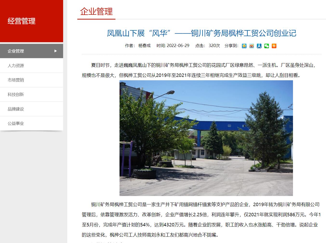 夏日時(shí)節(jié),走進(jìn)巍巍鳳凰山下的銅川礦務(wù)局楓樺工貿(mào)公司的花園式廠區(qū)綠意昂然、一派生機(jī)。廠區(qū)雖身處深山,規(guī)模也不是很大,但楓樺工貿(mào)公司從2019年至2021年連續(xù)三年相繼完成生產(chǎn)效益三級(jí)跳,卻讓人刮目相看。