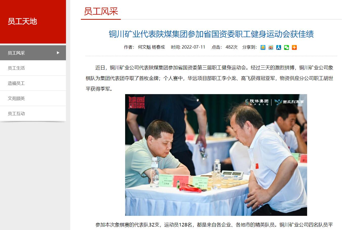 近日,銅川礦業(yè)公司代表陜煤集團參加省國資委第三屆職工健身運動會。經(jīng)過三天的激烈拼搏,銅川礦業(yè)公司象棋隊為集團代表團奪取了首枚金牌;個人賽中,華遠項目部職工李小龍、高飛獲得冠亞軍,物資供應分公司職工胡世平獲得季軍。
