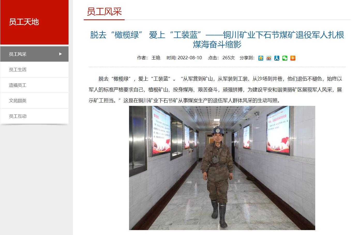脫去“橄欖綠”,愛(ài)上“工裝藍(lán)”。“從軍營(yíng)到礦山,從軍裝到工裝、從沙場(chǎng)到井巷,他們退伍不褪色,始終以軍人的標(biāo)準(zhǔn)嚴(yán)格要求自己,植根礦山、投身煤海、艱苦奮斗,頑強(qiáng)拼搏,為建設(shè)平安和諧美麗礦區(qū)展現(xiàn)軍人風(fēng)采,展示礦工擔(dān)當(dāng)。”這是在銅川礦業(yè)下石節(jié)礦從事煤炭生產(chǎn)的退伍軍人群體風(fēng)采的生動(dòng)寫(xiě)照。