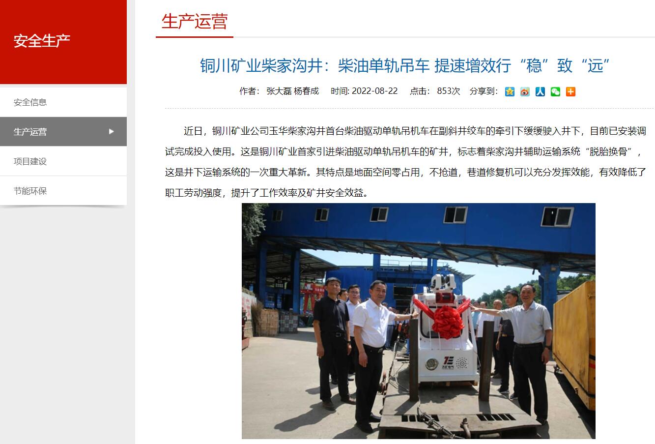近日,銅川礦業(yè)公司玉華柴家溝井首臺(tái)柴油驅(qū)動(dòng)單軌吊機(jī)車在副斜井絞車的牽引下緩緩駛?cè)刖?,目前已安裝調(diào)試完成投入使用。這是銅川礦業(yè)首家引進(jìn)柴油驅(qū)動(dòng)單軌吊機(jī)車的礦井,標(biāo)志著柴家溝井輔助運(yùn)輸系統(tǒng)“脫胎換骨”,這是井下運(yùn)輸系統(tǒng)的一次重大革新。其特點(diǎn)是地面空間零占用,不搶道,巷道修復(fù)機(jī)可以充分發(fā)揮效能,有效降低了職工勞動(dòng)強(qiáng)度,提升了工作效率及礦井安全效益。