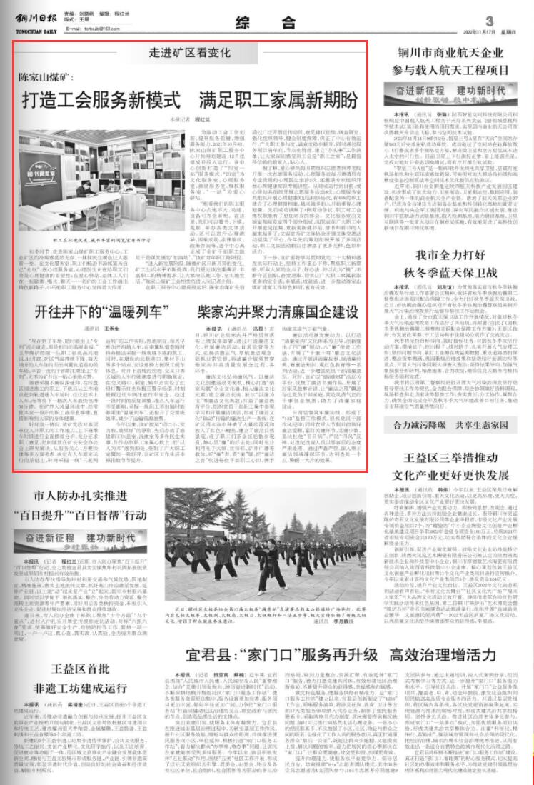 下一步,該礦要將學(xué)習(xí)貫徹黨的二十大精神落在實(shí)際行動上,堅(jiān)持工作重心下移,聚焦職工新期盼,聽取大家的金點(diǎn)子、好辦法,并以此為“鏡”,不斷守正創(chuàng)新、奮發(fā)進(jìn)取,切實(shí)讓廣大職工家屬獲取更多的安全感、幸福感、成就感,進(jìn)一步推動陳家山煤礦建家工作特色鮮明、富有成效。