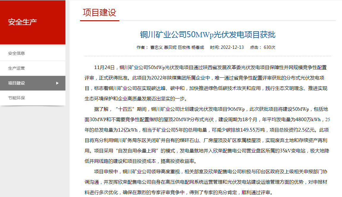 集團(tuán)網(wǎng) | 銅川礦業(yè)公司50MWp光伏發(fā)電項(xiàng)目獲批