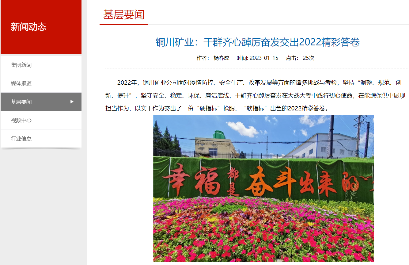 新的一年、新的期許,新的征程、新的出發(fā)。2023年,銅川礦業(yè)公司廣大干部職工繼續(xù)努力以踔厲奮發(fā)、只爭朝夕、干事創(chuàng)業(yè)的實際行動再譜新篇章。(楊春成)