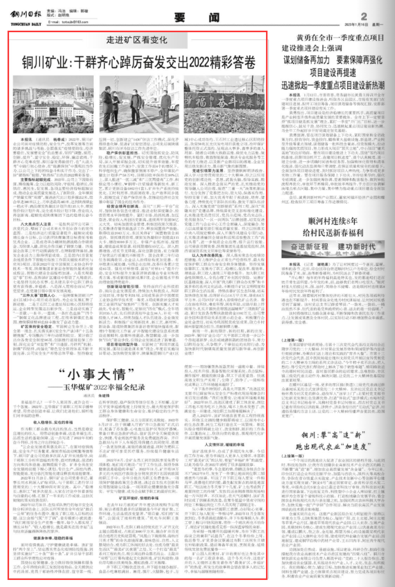 人文情懷濃,暖暖的幸福 該礦連續(xù)多年,辦成了多項(xiàng)民生大事。今后的工作方向,要為幸福注入更多人文情懷,豐富職工對(duì)“最美礦區(qū)”的認(rèn)知,彰顯“幸福礦井”的溫度。以此為指導(dǎo),在2022年涌現(xiàn)了很多溫暖故事。