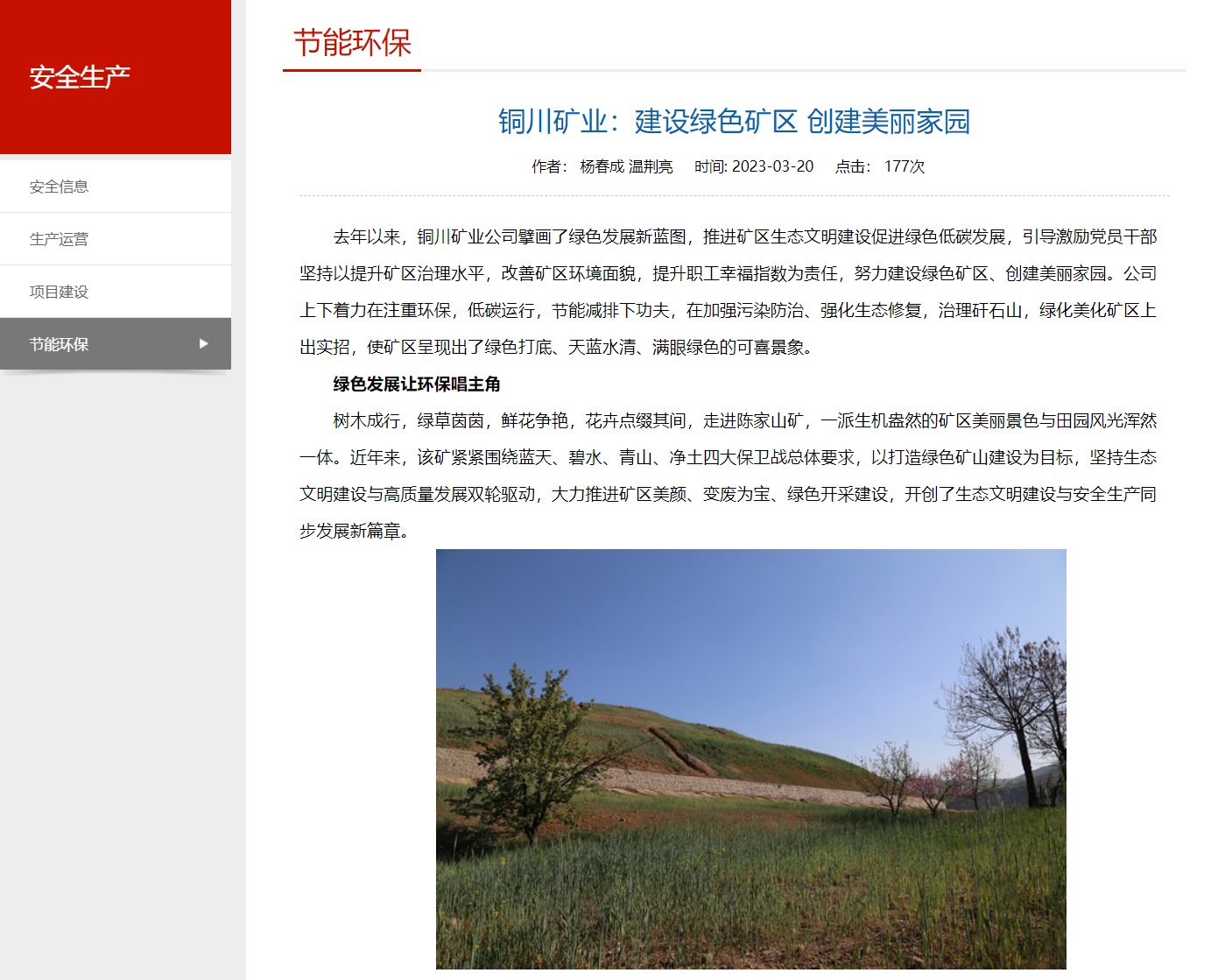 環(huán)境保護只有起點,沒有終點。2023年,銅川礦業(yè)公司圍繞“3060雙碳”目標,把保護環(huán)境與安全生產放在同等位置,堅持守護好一片綠水青山,共同建設好美麗家園,讓“天藍、山綠、水清”的綠色礦山煥發(fā)出更加迷人的色彩。(楊春成 溫荊亮)