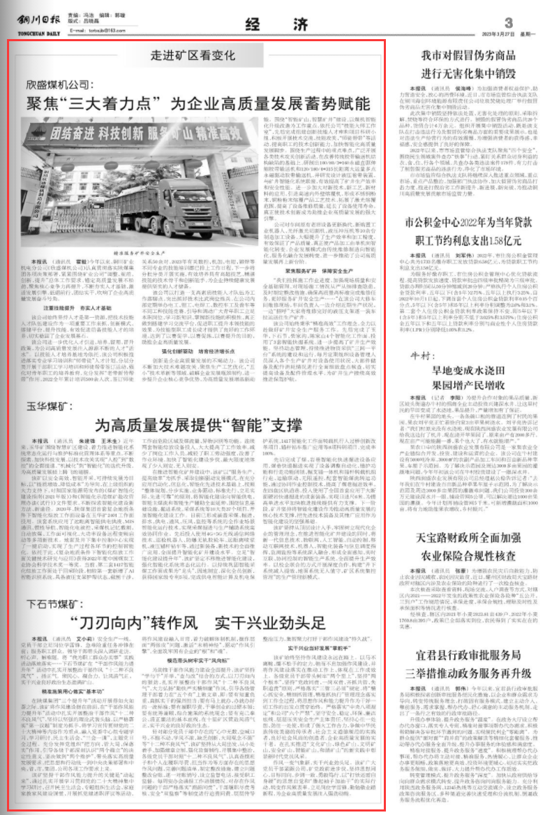 本報訊 (通訊員 霍毅)今年以來,銅川礦業(yè)機電分公司(欣盛煤機公司)認真貫徹落實陜煤集團各項決策部署,緊緊圍繞礦業(yè)公司“調(diào)整、規(guī)范、創(chuàng)新、提升”總體工作要求,錨定高質(zhì)量發(fā)展不松勁、聚焦核心競爭力再提升,不斷夯實人才基礎(chǔ)、激活發(fā)展引擎,砥礪前行、團結(jié)實干,吹響了企業(yè)高質(zhì)量發(fā)展奮斗號角。