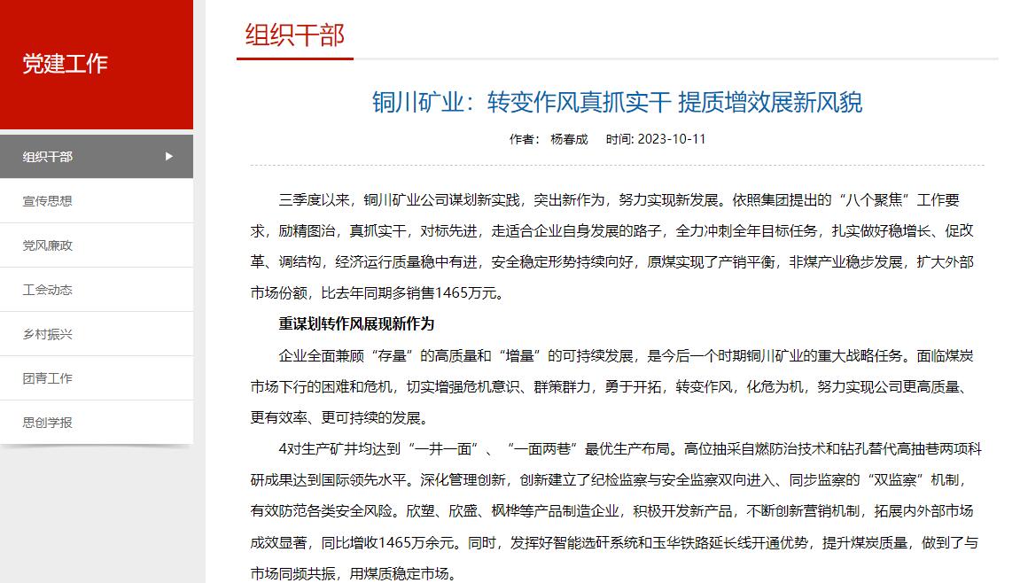 4對(duì)生產(chǎn)礦井均達(dá)到“一井一面”、“一面兩巷”最優(yōu)生產(chǎn)布局。高位抽采自燃防治技術(shù)和鉆孔替代高抽巷兩項(xiàng)科研成果達(dá)到國(guó)際領(lǐng)先水平。深化管理創(chuàng)新,創(chuàng)新建立了紀(jì)檢監(jiān)察與安全監(jiān)察雙向進(jìn)入、同步監(jiān)察的“雙監(jiān)察”機(jī)制,有效防范各類(lèi)安全風(fēng)險(xiǎn)。欣塑、欣盛、楓樺等產(chǎn)品制造企業(yè),積極開(kāi)發(fā)新產(chǎn)品,不斷創(chuàng)新?tīng)I(yíng)銷(xiāo)機(jī)制,拓展內(nèi)外部市場(chǎng)成效顯著,同比增收1465萬(wàn)余元。同時(shí),發(fā)揮好智能選矸系統(tǒng)和玉華鐵路延長(zhǎng)線開(kāi)通優(yōu)勢(shì),提升煤炭質(zhì)量,做到了與市場(chǎng)同頻共振,用煤質(zhì)穩(wěn)定市場(chǎng)。