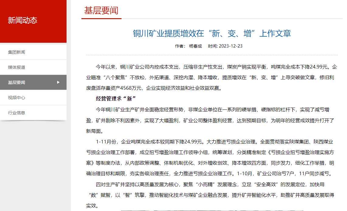 銅川礦業(yè)提質(zhì)增效在“新、變、增”上作文章
