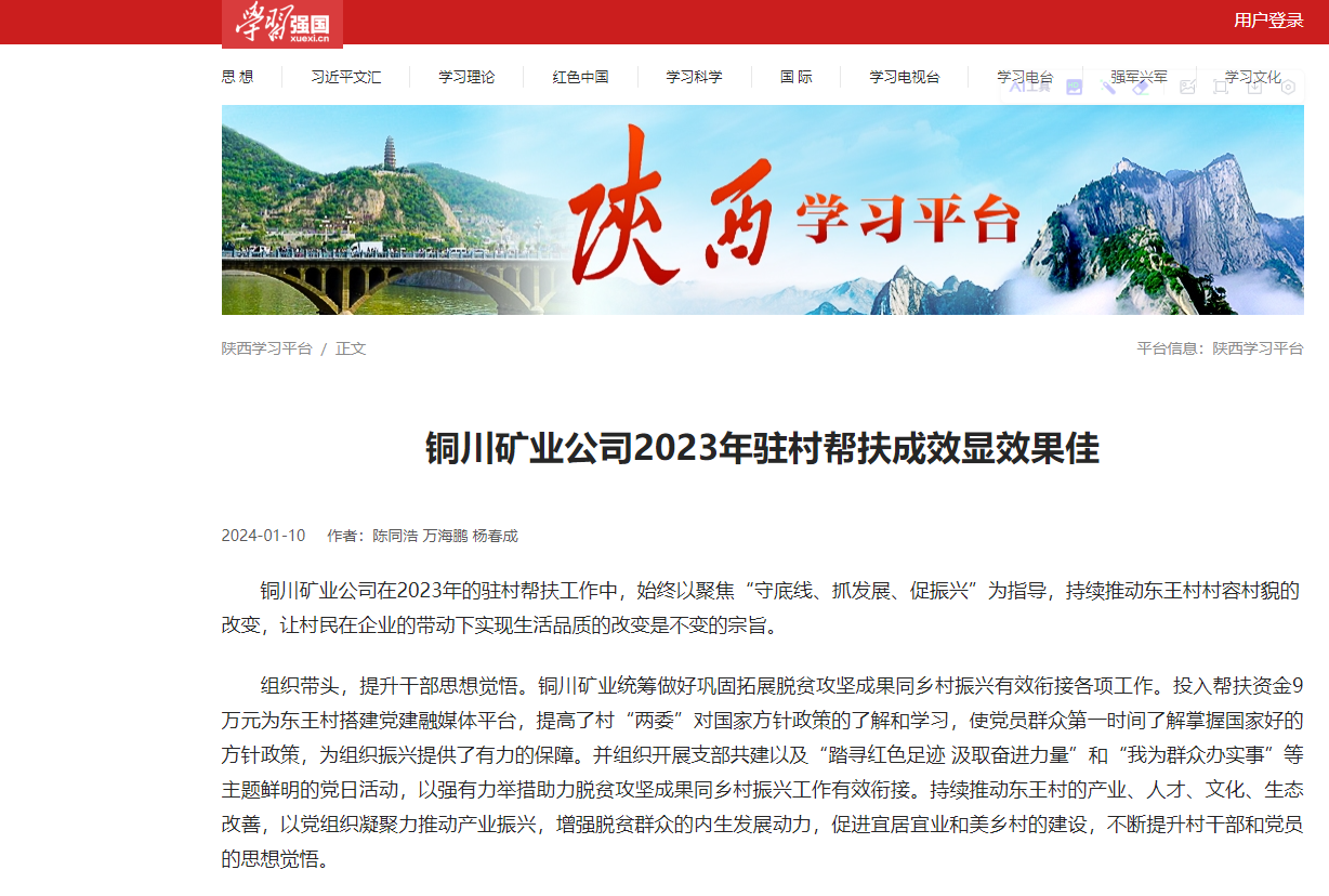 銅川礦業(yè)公司2023年駐村幫扶成效顯效果佳