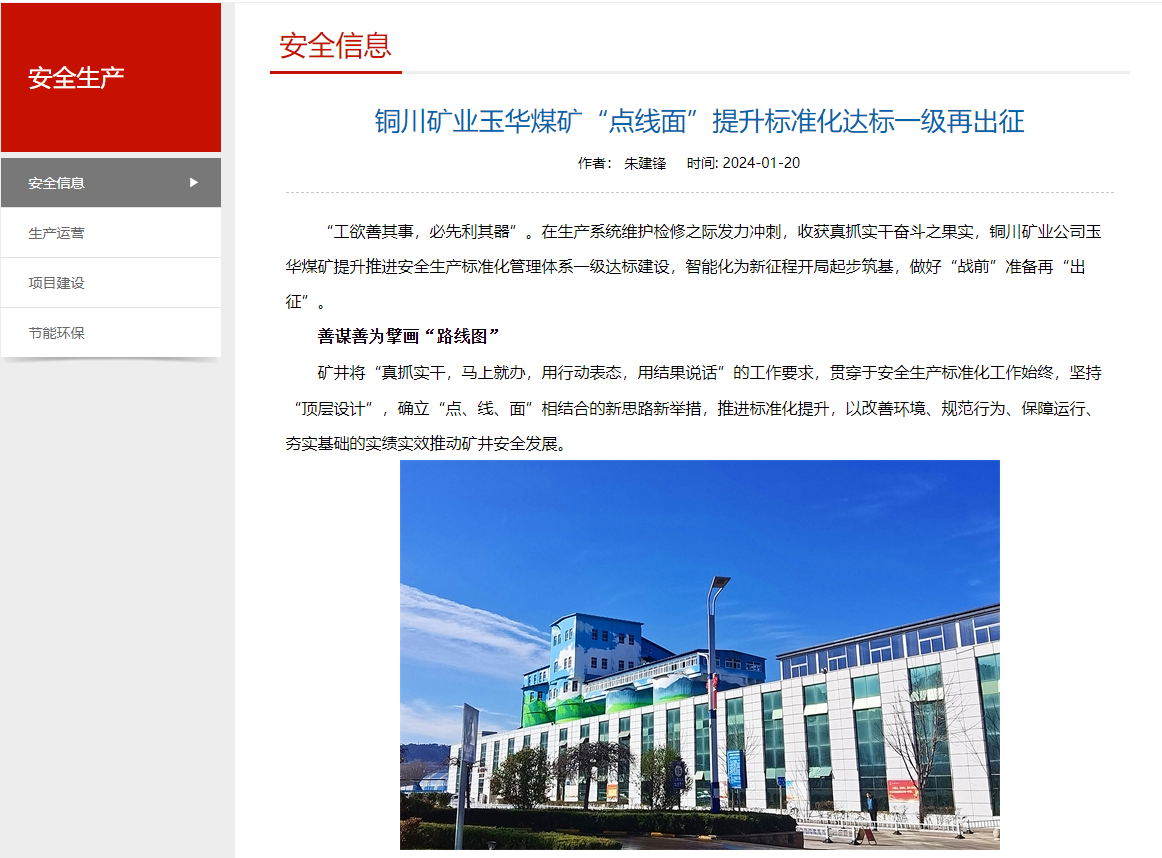 銅川礦業(yè)玉華煤礦“點線面”提升標準化達標一級再出征