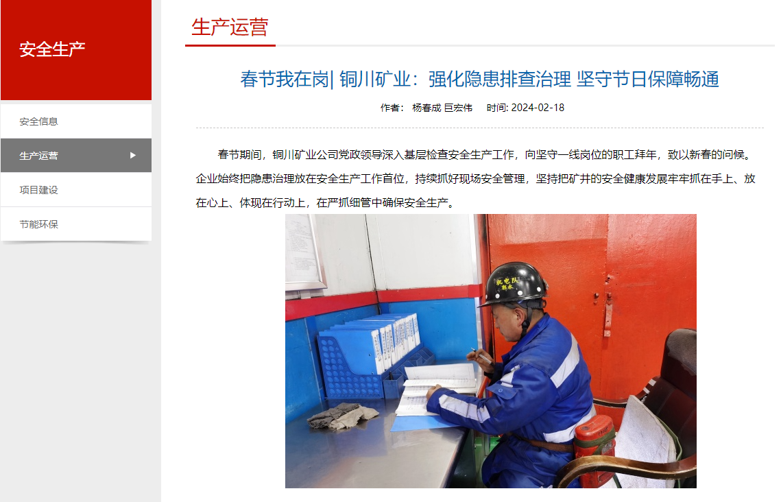 春節(jié)我在崗| 銅川礦業(yè):強(qiáng)化隱患排查治理 堅守節(jié)日保障暢通