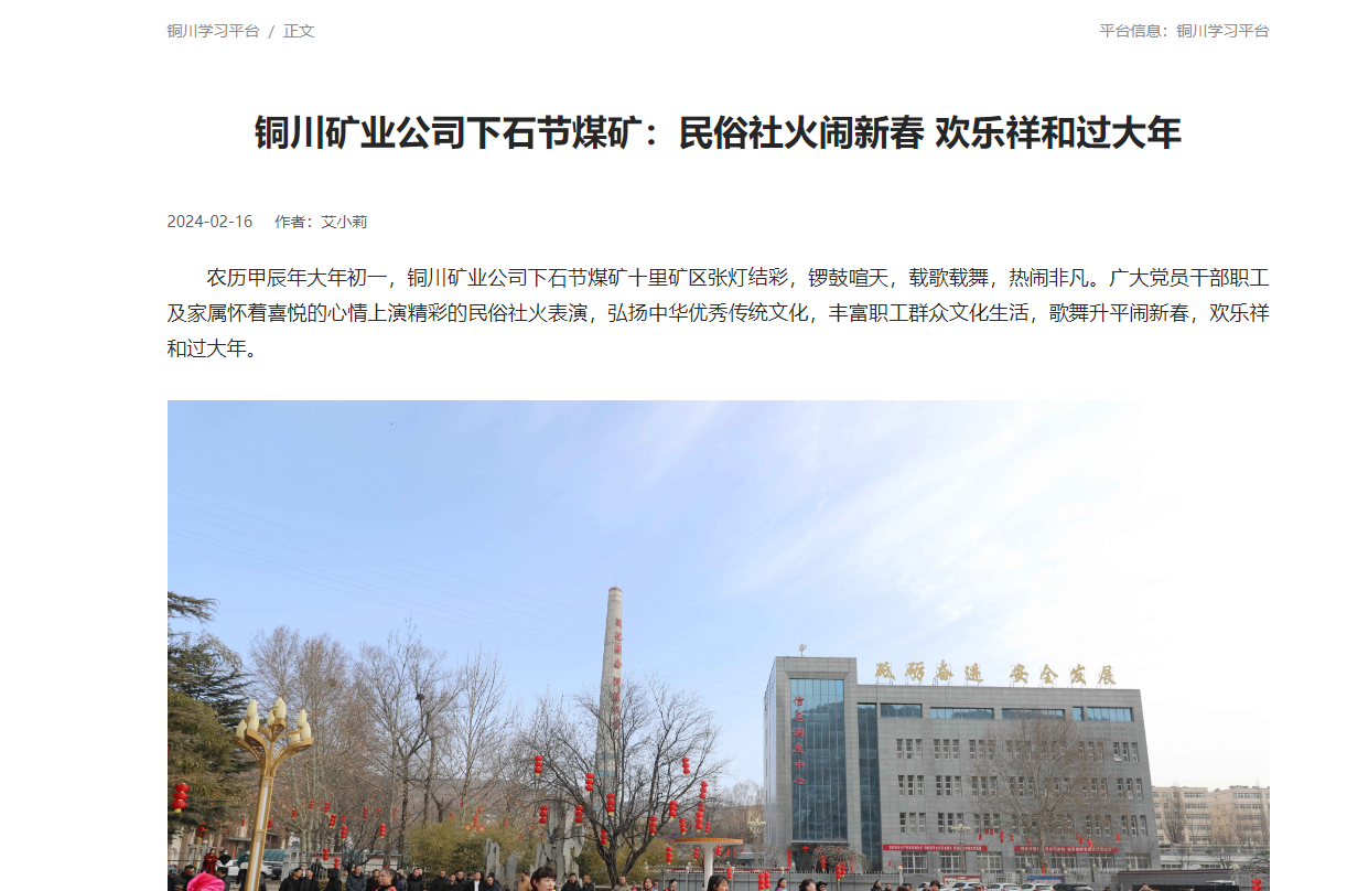 銅川礦業(yè)公司下石節(jié)煤礦:民俗社火鬧新春 歡樂祥和過大年
