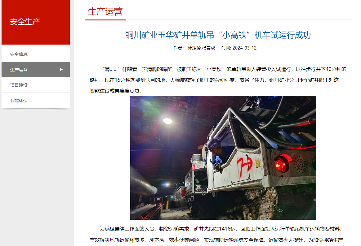 “滴……”伴隨著一聲清脆的鳴笛,被職工稱(chēng)為“小高鐵”的單軌吊乘人裝置投入試運(yùn)行,以往步行井下40分鐘的路程,現(xiàn)在15分鐘就能到達(dá)目的地,大幅度減輕了職工的勞動(dòng)強(qiáng)度,節(jié)省了體力,銅川礦業(yè)公司玉華礦井職工對(duì)這一智能建設(shè)成果連連點(diǎn)贊。