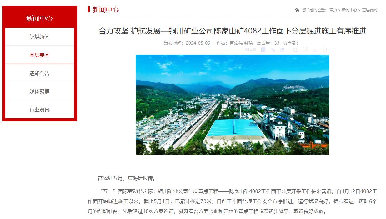合力攻堅(jiān) 護(hù)航發(fā)展—銅川礦業(yè)公司陳家山礦4082工作面下分層掘進(jìn)施工有序推進(jìn)