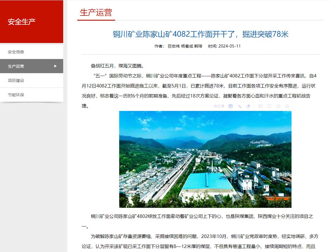 銅川礦業(yè)陳家山礦4082工作面開干了,掘進(jìn)突破78米