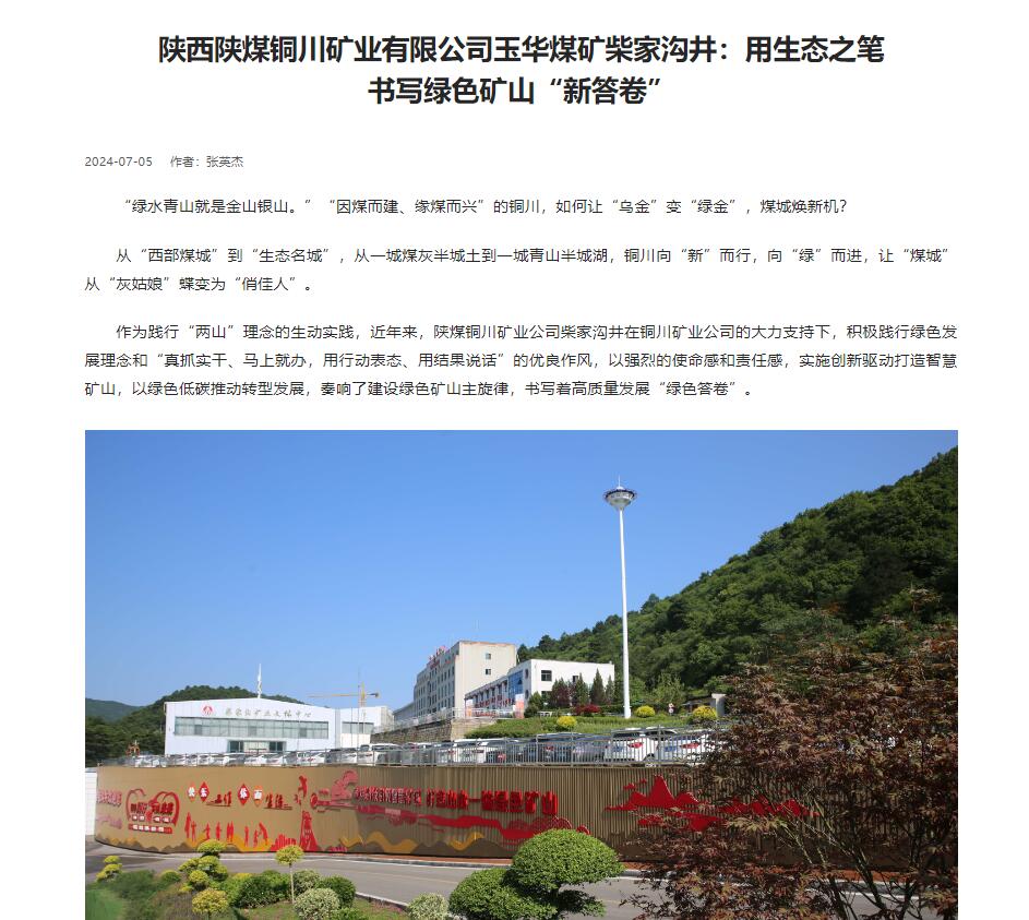 作為踐行“兩山”理念的生動實踐,近年來,陜煤銅川礦業(yè)公司柴家溝井在銅川礦業(yè)公司的大力支持下,積極踐行綠色發(fā)展理念和“真抓實干、馬上就辦,用行動表態(tài)、用結(jié)果說話”的優(yōu)良作風,以強烈的使命感和責任感,實施創(chuàng)新驅(qū)動打造智慧礦山,以綠色低碳推動轉(zhuǎn)型發(fā)展,奏響了建設綠色礦山主旋律,書寫著高質(zhì)量發(fā)展“綠色答卷”。
