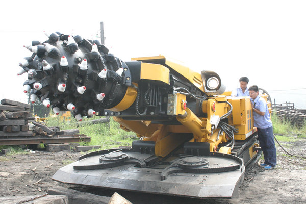 技術(shù)人員在地面調(diào)試新型綜掘機(jī)