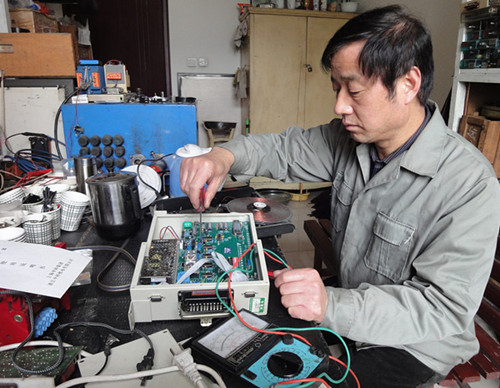 圖為馬中信同志在義務(wù)為職工家屬維修家用電器現(xiàn)場
