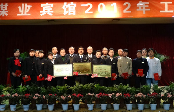 1月15日下午,銅川煤業(yè)賓館在二樓會(huì)議廳召開(kāi)銅川煤業(yè)賓館2012年工作會(huì),對(duì)上一年度的工作進(jìn)行了總結(jié),并對(duì)2011年度評(píng)出的3個(gè)先進(jìn)集體,13位先進(jìn)個(gè)人進(jìn)行了表彰??偨?jīng)理侯繼峰對(duì)賓館2012年工作提出了新的要求,一是抓好營(yíng)銷(xiāo)工作,提高客房入住率及就餐率;二是做好各項(xiàng)服務(wù)保障工作,為顧客提供精細(xì)化服務(wù);三是繼續(xù)加強(qiáng)安全和業(yè)務(wù)技能培訓(xùn)工作,提高賓館服務(wù)質(zhì)量。侯繼峰總經(jīng)理還強(qiáng)調(diào)要為銅川礦業(yè)發(fā)展提供優(yōu)質(zhì)服務(wù)。