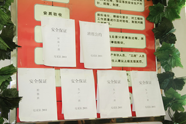 班組制定安全公約,職工寫出安全保證,進一步提高職工的責(zé)任感和使命感。各單位學(xué)習(xí)室里安全園地內(nèi)容貼近安全生產(chǎn)月主題,讓職工在耳熏目染中牢記安全的重要性。并組織礦退休老職工走進區(qū)隊,走上講臺,用自己多年的工作經(jīng)歷教育廣大職工遵章守紀,遠離“三違”,永保安全。