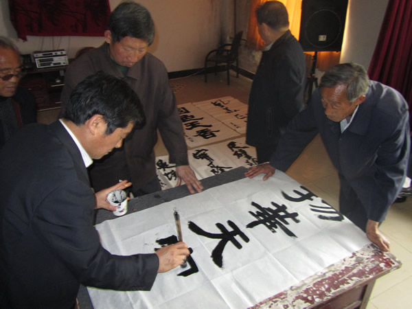 最后,劉建國(guó)書(shū)記、蔣立先副書(shū)記講話(huà),他們肯定了這次迎春筆會(huì)是一次很有意義的活動(dòng)。辦得好。希望大家繼續(xù)努力,不斷堅(jiān)持,不斷提高,為弘揚(yáng)華夏文化,促進(jìn)社區(qū)和諧穩(wěn)定做出成績(jī)。參加迎春筆會(huì)的還有桃園社區(qū)黨政領(lǐng)導(dǎo),所屬單位,科室的負(fù)責(zé)同志,尤其是書(shū)畫(huà)大師郭雙盛先生、劉文仁老師到會(huì),為桃園書(shū)畫(huà)愛(ài)好者傳授技藝,為迎春筆會(huì)增光添彩。與會(huì)同志表示,決不辜負(fù)領(lǐng)導(dǎo)的期望,一定要寫(xiě)好字,練好功,提高書(shū)畫(huà)水平,為礦區(qū)的“三型六化”建設(shè)作貢獻(xiàn)!