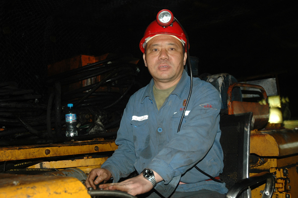 圖為王西杰操作先進(jìn)的綜掘機(jī)進(jìn)行井下巷道掘進(jìn)工作