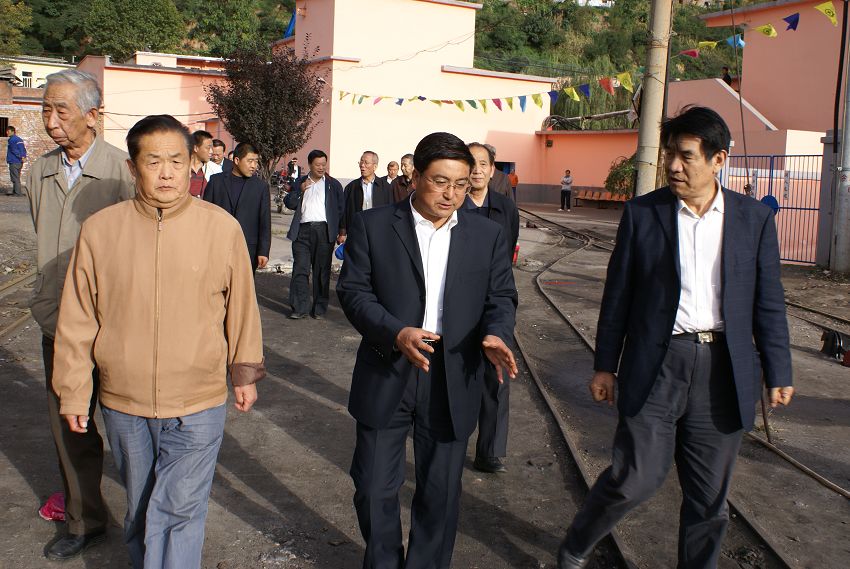 礦黨委書記武永發(fā)代表礦黨政對(duì)老領(lǐng)導(dǎo)一行的到來表示熱烈的歡迎。介紹了金華山礦的生產(chǎn)布局、安全生產(chǎn)、職工收入、改革發(fā)展和近年來,該礦在安全生產(chǎn)、民生工程建設(shè)等方面工作的進(jìn)展情況后,局退休老干部和礦領(lǐng)導(dǎo)在辦公樓前合影留念。隨后,局離休老干部在礦黨委書記武永發(fā)、黨委副書記、紀(jì)委書記劉貴平、工會(huì)主席李建民、副礦長(zhǎng)屈國(guó)慶等領(lǐng)導(dǎo)的陪同下,到該礦副井口、供應(yīng)科、職工食堂等地進(jìn)行了參觀。