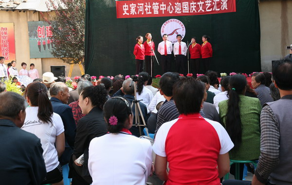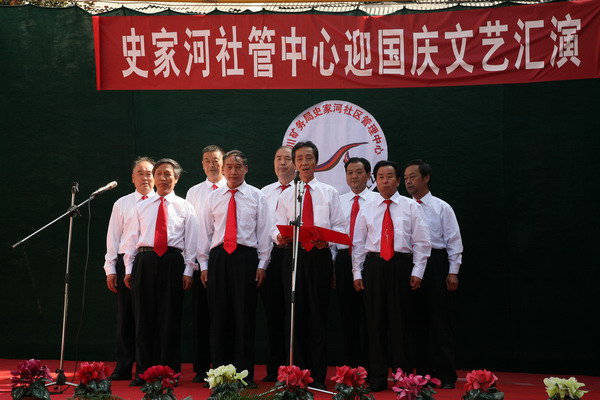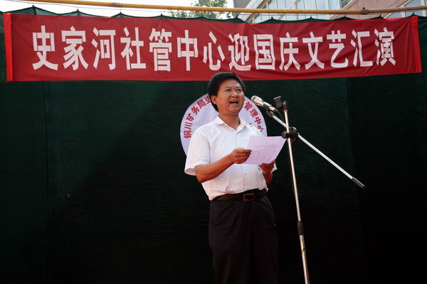 演出在歡慶的鑼鼓聲中拉開了序幕。史家河社區(qū)管理中心黨總支副書記楊樹新致歡迎詞。局副總劉國強(qiáng)做了重要講話。史家河社區(qū)近年來不斷創(chuàng)新管理,推行人性化、親情化管理,重視職工文化生活,先后成立了秧歌隊(duì)、鑼鼓隊(duì)、門球隊(duì)等群眾性文體組織,為“百人鑼鼓隊(duì)”和“舞龍隊(duì)”購買了鑼鼓樂器,統(tǒng)一了服裝,建立了訓(xùn)練場地,使廣大職工家屬受到精神熏陶,在社區(qū)形成了一道靚麗的風(fēng)景線。希望史家河社區(qū)繼續(xù)發(fā)揚(yáng)成績,再接再厲,按照局黨政的部署,強(qiáng)化社區(qū)職能,打造文化社區(qū)。并預(yù)祝演出圓滿成功。