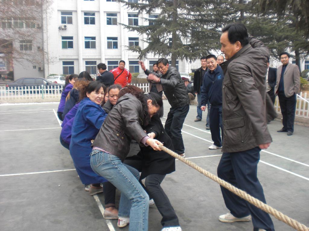 隨著哨音的吹響,激動人心的拔河比賽開始了!各個代表隊輪番上場,雙方隊員緊緊抓牢手中的繩子,個個使出渾身力氣,咬緊牙關(guān),臉憋得通紅,雙手拔得通紅,仍然奮力拼搏,齊心協(xié)力往后拉。場場比賽牽動著場外觀賽職工的心,紛紛在旁加油助威,熱情的啦啦隊在場外高喊著“加油!加油!”,笑聲、掌聲、加油聲此起彼伏。。。。。。