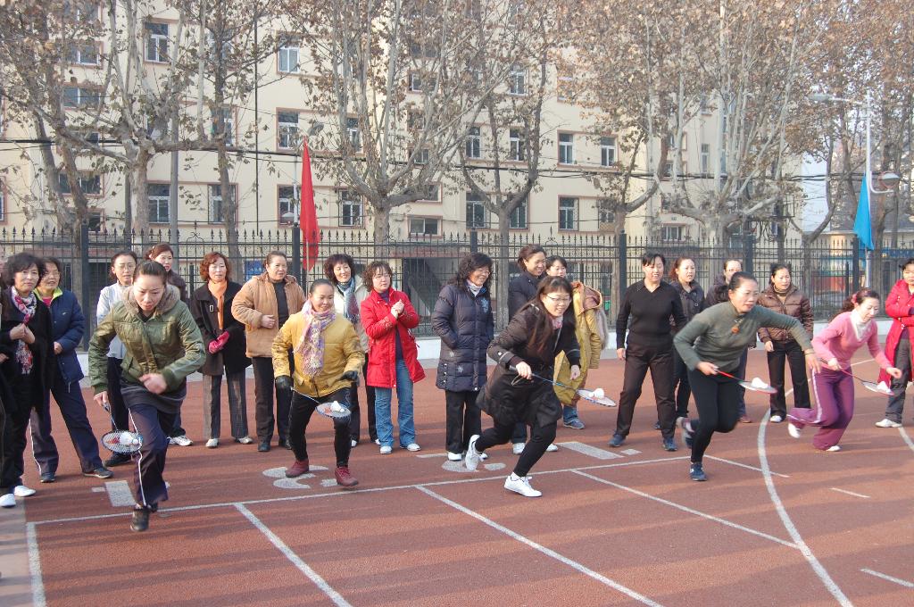 早晨9點(diǎn),晴空碧藍(lán),寒風(fēng)凜冽,氣溫降到了零下8度,但參加趣味運(yùn)動(dòng)會(huì)的教職員工忘卻了寒冷,參賽熱情高漲,賽前熱身躍躍欲試;男女4×200米接力是速度和體力的較量,激烈勇猛迅速;用羽毛球拍托球跑是耐力與技巧的角逐,“同舟共濟(jì)”雙人手握竹竿跑,體現(xiàn)兩人動(dòng)作最大限度的協(xié)調(diào)與統(tǒng)一,運(yùn)動(dòng)場(chǎng)上個(gè)個(gè)奮勇?tīng)?zhēng)先,場(chǎng)下觀眾加油叫好;在以礦泉水瓶子為靶子的15米距離內(nèi),參賽運(yùn)動(dòng)員用排球屏住呼吸精確擲準(zhǔn)全神貫注;參加定點(diǎn)投籃項(xiàng)目的運(yùn)動(dòng)員在投籃區(qū)5個(gè)定投點(diǎn)瞄準(zhǔn)、跳起、投籃一氣呵成,顯示了他們?nèi)粘sw育鍛煉的良好素養(yǎng)。