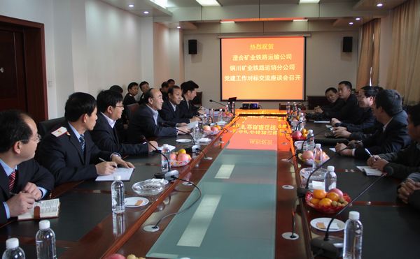 在召開的黨群工作對(duì)標(biāo)交流座談會(huì)上,銅川礦業(yè)鐵運(yùn)分公司副經(jīng)理陸新銅代表公司黨政對(duì)澄合礦業(yè)鐵運(yùn)分公司一行的到來表示熱烈歡迎。銅川礦業(yè)鐵運(yùn)分公司黨委書記高德富對(duì)該分公司黨建體系工作情況作了簡(jiǎn)要介紹。同時(shí)希望通過對(duì)標(biāo)交流互動(dòng),雙方實(shí)現(xiàn)互相學(xué)習(xí)、互相提高的目的。交流會(huì)上,與會(huì)人員還一同觀看了銅川礦業(yè)鐵運(yùn)分公司黨建質(zhì)量管理體系工作專題片。
