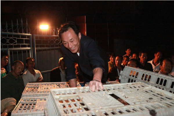 7月11日23點(diǎn)15分,一輛滿載小雞的大貨車緩緩駛?cè)脬~川市金鎖關(guān)鎮(zhèn)袁家山村,村口焦急等待著的村民們立刻沸騰起來。這輛載著村民致富希望的卡車還沒有停穩(wěn),就被村民們包圍了起來,在村干部的指揮下,村民們有序的進(jìn)行分配,一時(shí)間汽車馬達(dá)聲、村民歡笑聲、小雞鳴叫聲混成一片,將山村寧靜的夜晚裝點(diǎn)的如集市般的熱鬧……