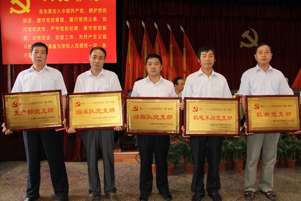 鴨口公司黨委工作部部長楊治華帶領(lǐng)新黨員進行入黨宣誓。該公司副總經(jīng)理閆社會、工會主席王泰昌分別宣讀了“創(chuàng)先爭優(yōu)”、“科技創(chuàng)新”表彰決定,并為受表彰的先進頒發(fā)了獎牌、獎金和證書。