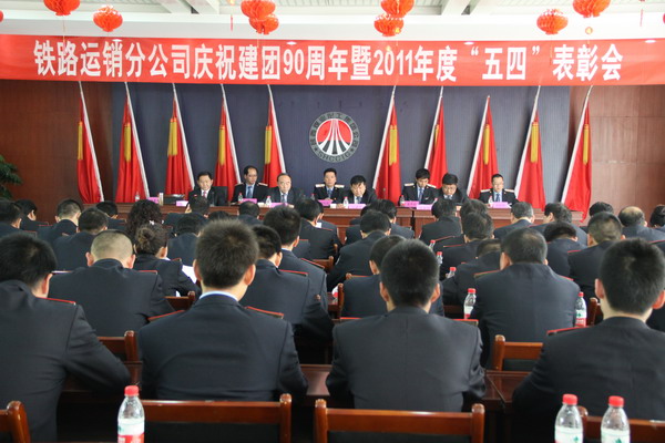 “火紅的五月,火紅的青春”,5月4日上午,鐵路運銷分公司慶祝建團(tuán)90周年暨2011年度“五四”表彰大會在激昂的團(tuán)歌聲中在該分公司機關(guān)二樓會議室隆重召開,該分公司經(jīng)理孫建軍、黨委書記高德富出席會議并發(fā)表了熱情洋溢的講話,安監(jiān)處長陸新銅出席會議,黨委副書記、紀(jì)委書記、工會主席高愛林主持會議。公司基層各單位黨政主要領(lǐng)導(dǎo)、團(tuán)支部書記,機關(guān)各科室科長,受表彰的先進(jìn)集體代表、先進(jìn)個人及團(tuán)員青年等70余人參加了會議。