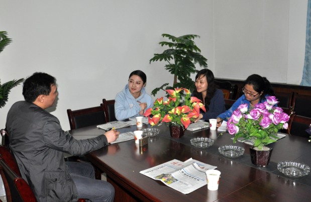 青年編輯們對(duì)優(yōu)秀班組長(zhǎng)進(jìn)行采訪