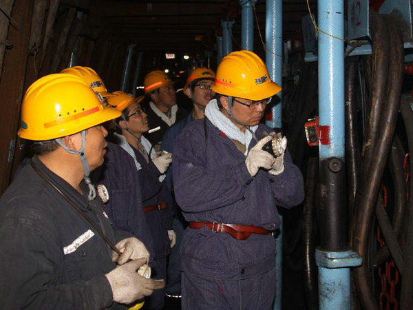 4月9日,在該公司安監(jiān)處長查義堂,黨委工作部、安質(zhì)科、工會等相關(guān)科室人員的陪同下三位青年編輯戴上安全帽,背上自救器和礦燈,深入井下生產(chǎn)一線,深入工作面,對井下生產(chǎn)過程進行了全面了解。升井后,三位青年編輯有關(guān)領(lǐng)導(dǎo)的陪同下,先后對該公司安全文化長廊、醫(yī)院、員工工食堂等地進行了參觀采訪,并對該公司發(fā)明出“十米連鎖”的生產(chǎn)科科長席聯(lián)校和有56年黨齡的老黨員高秀英進行了采訪,拉開了“青年編輯下基層”主題教育實踐活動的帷幕。